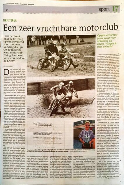 Afgelopen zaterdag, 14 mei, organiseerde M.C. Flying Boetoe alweer voor de 46e keer de traditionele Grasbaanraces op de Nutsbaan in Joure. Alhoewel; traditioneel? Grasbaanraces werden vroeger als onderdeel van een feestprogramma georganiseerd. Simpel: twee linkerbochten, start, finish en veel stropakken. Met veel, heel veel publiek. Spektakel van de bovenste plank en een groot feest. Vandaag de dag is Grasbaanracen vooral een sport.